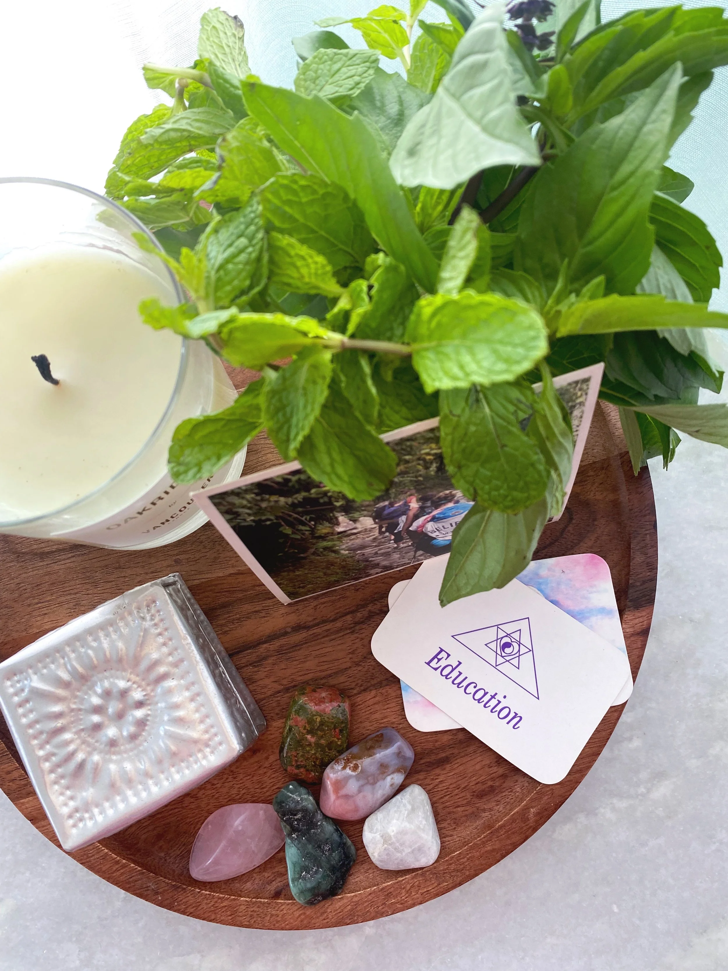 The candle is the centerpiece. It’s what you’ll come back to over and over again to light. It’s what will draw you to your alter to look at all your special things. Choose your candle wisely so that you’ll want to light it. I’m not a fan of smelly candles so, I know I need to choose something that I’m happy is burning. Maybe you’re into seasonal candles. That’s perfect. Whatever you want to have burning and scenting your home. This candle was a gift from my cousin and is a signature scent from a project she works on. Added love and light.