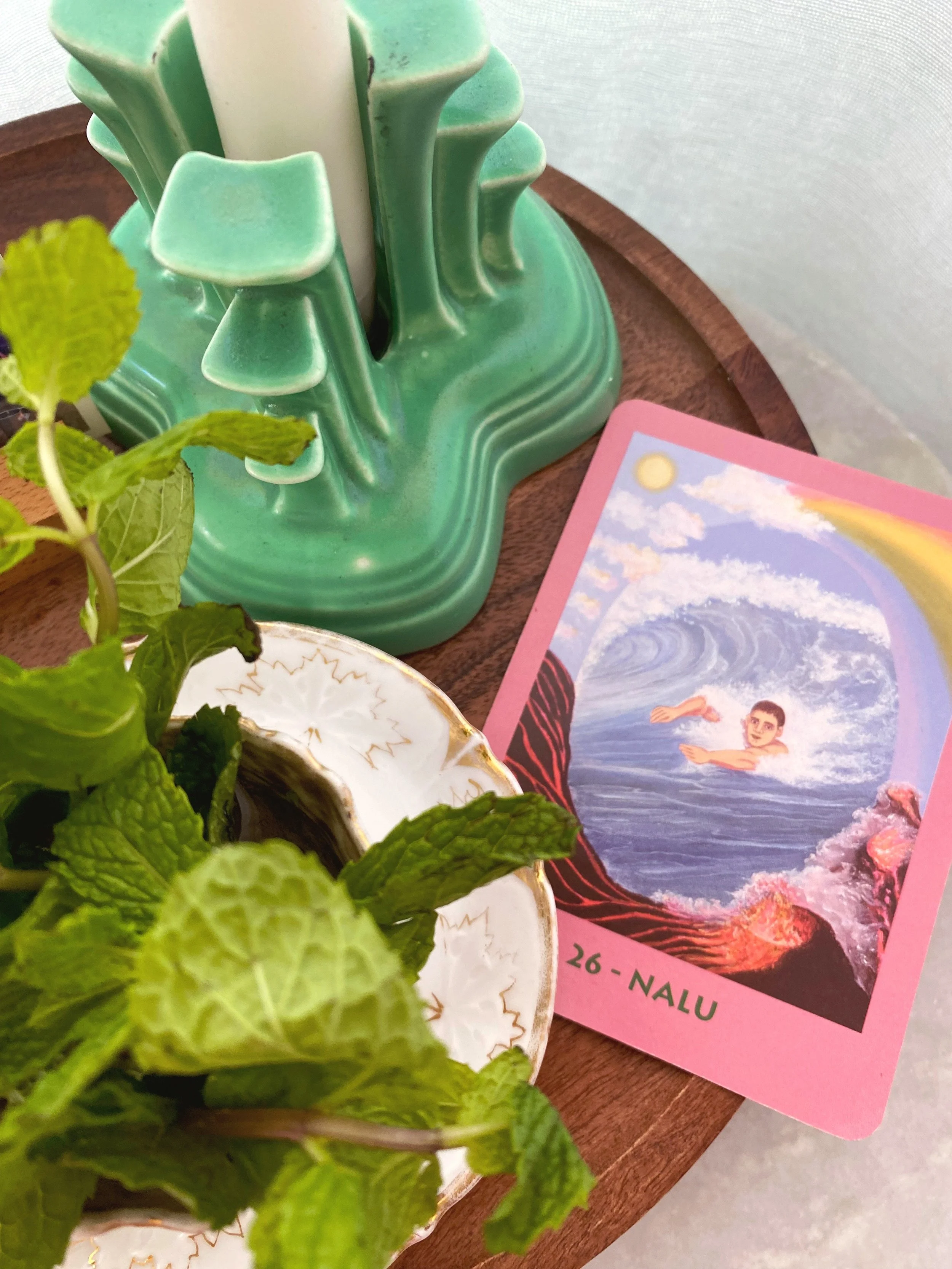 Whatever feels spiritual to you. Bring it forward! For me, I love pulling a tarot or angel card and carrying a word or a message with me through the week. Last week I pulled the Nalu card out of my Mana Deck and the message was to deep dive when emotions feel like an all consuming wave. It was the perfect message and I’ve been thinking about it all week.