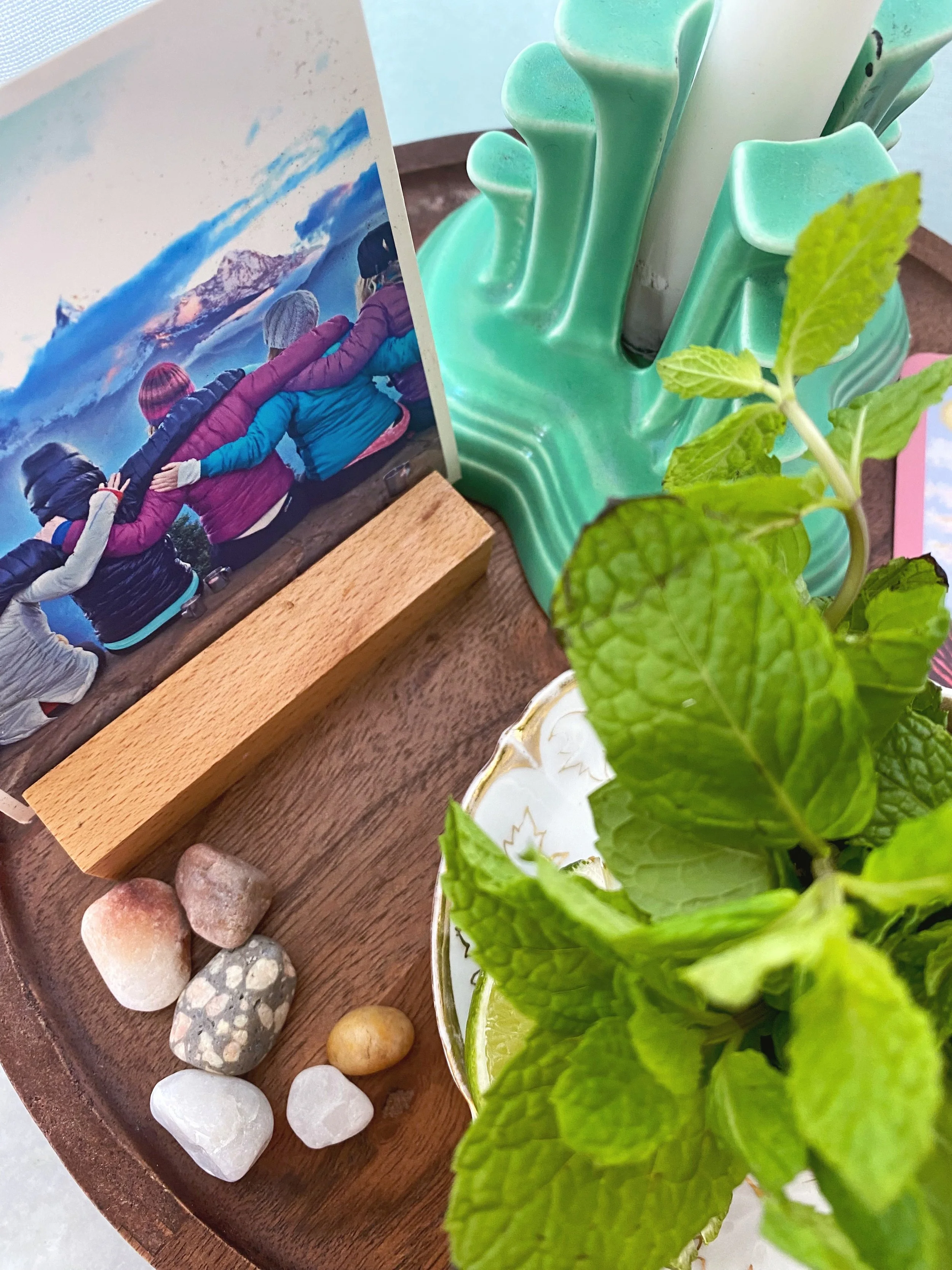 When I was in High School I used to go over to one of my Besties house a couple times a week. The thing I loved most about her house was her Mom kept a small vintage table in the kitchen that functioned as a catch all for anything magical and good. That thing was loaded up. It had a fruit basket, a rotating inventory of tarot cards, angel cards or nods to different yogis or gurus. It was an ever changing display of found objects. A bird feather, some fresh flowers. You name it. This table was overflowing with goodness.