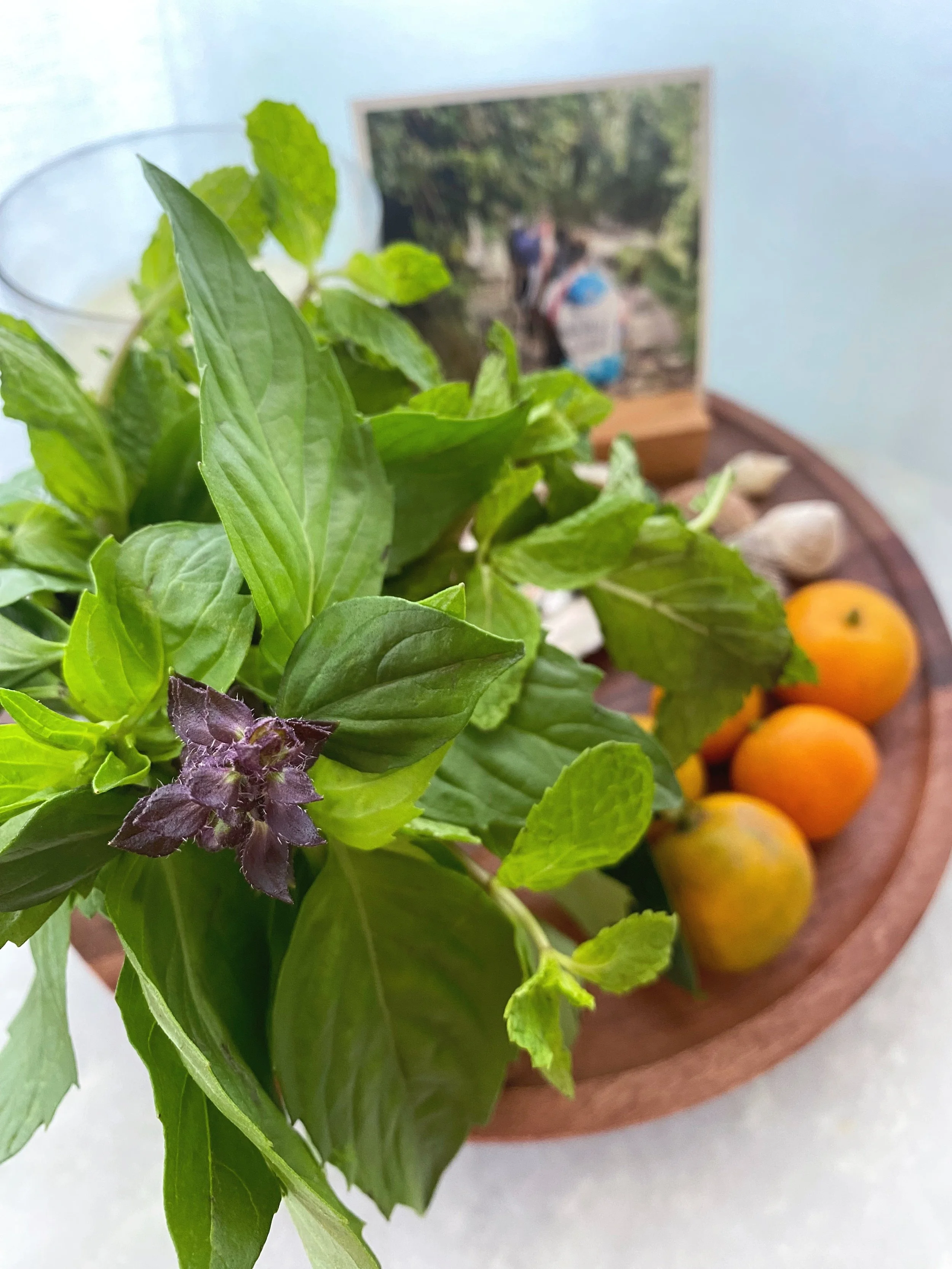 Lots of times I double up the something fresh and the something useful and I keep fresh herbs in a little vase. I’m ten times more likely to cut up some fresh basil if it’s handy and visible. This could be anything! Maybe it’s some special salt for the perfect dinner or, maybe it’s cinnamon for your morning coffee. Honey or dried herbs would be other excellent contenders for this category! This week I have some Calamansi. I loooove squeezing some into cold water for an extra pop of flavor.